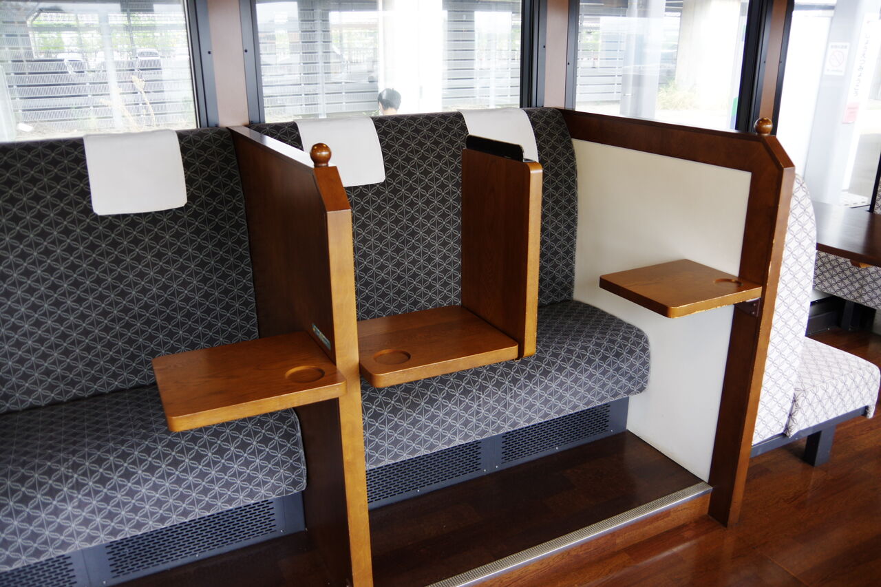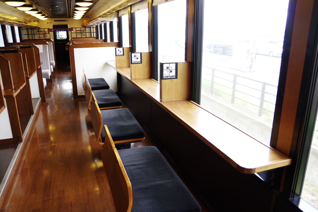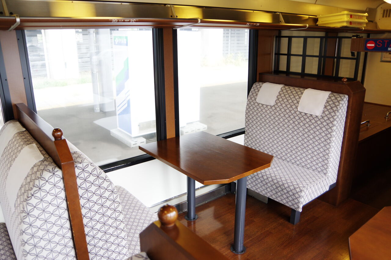 車内の構成は1・3号車が座席車、2号車がカウンターとフリースペース。乗客は1・3号車に着席するようになっている