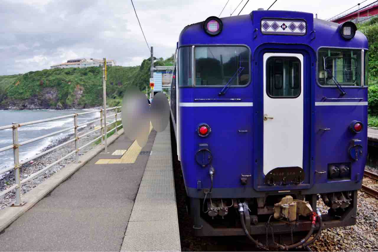 列車は上越妙高を発車、信越本線を北上して直江津から日本海側を走る。海を見ながら徐々に酔っていくのが最高に気分良い。途中、停車時間が長い青海川駅でホームに降りてみた。