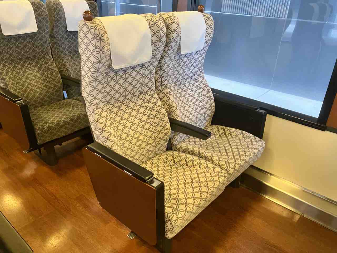 ということで、今回はこの車両に乗車。座席は海向きで海側にある2人掛け「展望ペアシート」を選んだ。