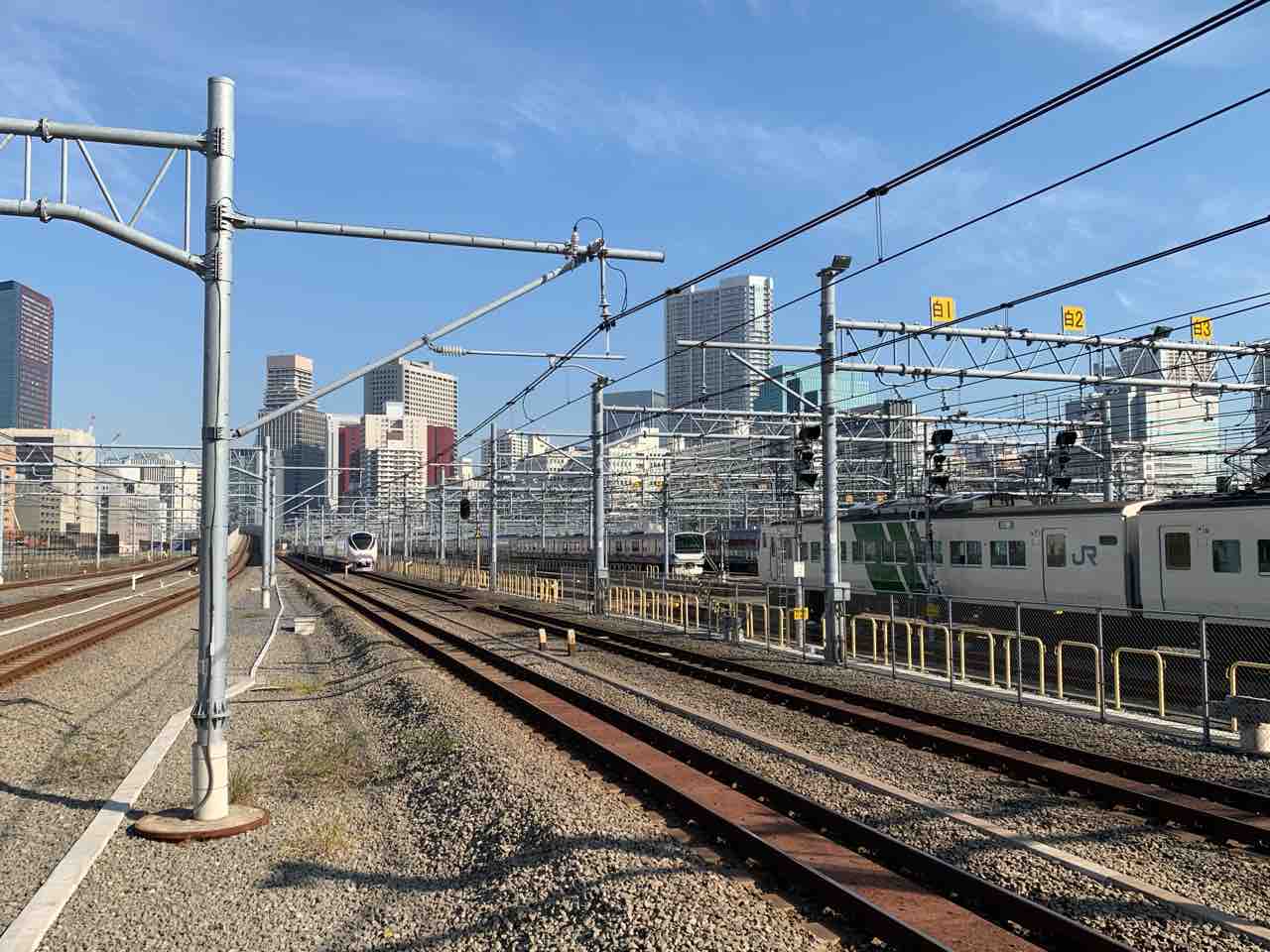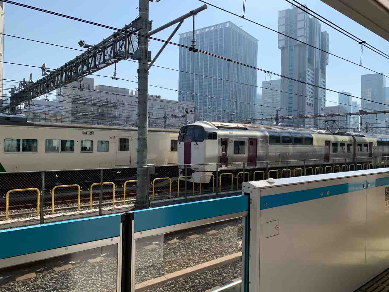 この日は横須賀線の新型車両E235系が疎開しているのが見えた。