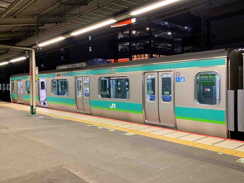 写真は常磐線のE231系で、早朝の始発駅に行くと見られることが多い印象。実際乗ってみると、これだけでも保温効果はかなり感じられる。冷暖房を使用する季節には大変ありがたい。