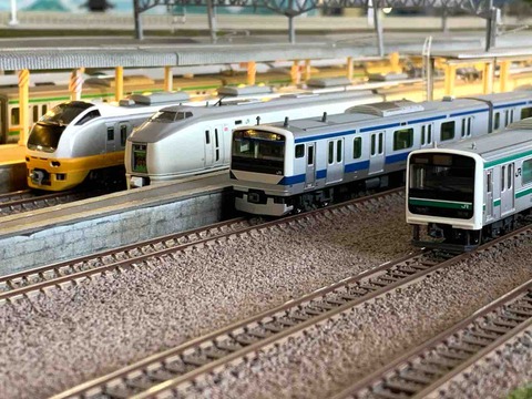 今回も友人と上野界隈の車両を持ち込み。鉄橋は上越線の渋川にある鉄橋らしさがあるが、どの車両でも似合うもの。