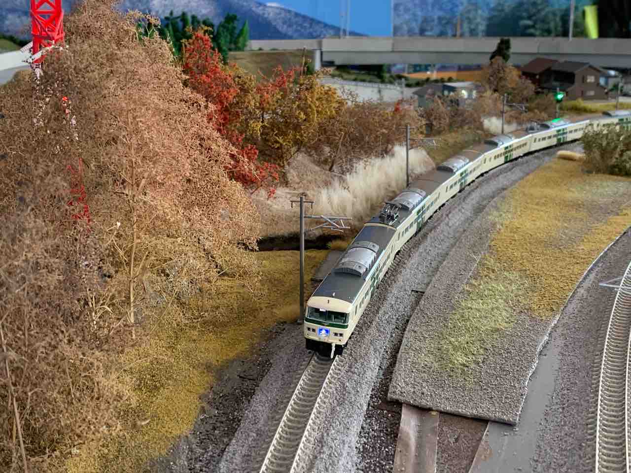 広い環状線のレイアウトのうち、7&8番線はレイアウトを約2周する距離がある番線。距離が長いだけでなく、この路線ならではの情景やリカラーの代名詞でもある立派な鉄橋があり、訪問する時にはほぼこの番線を使わせてもらっている。