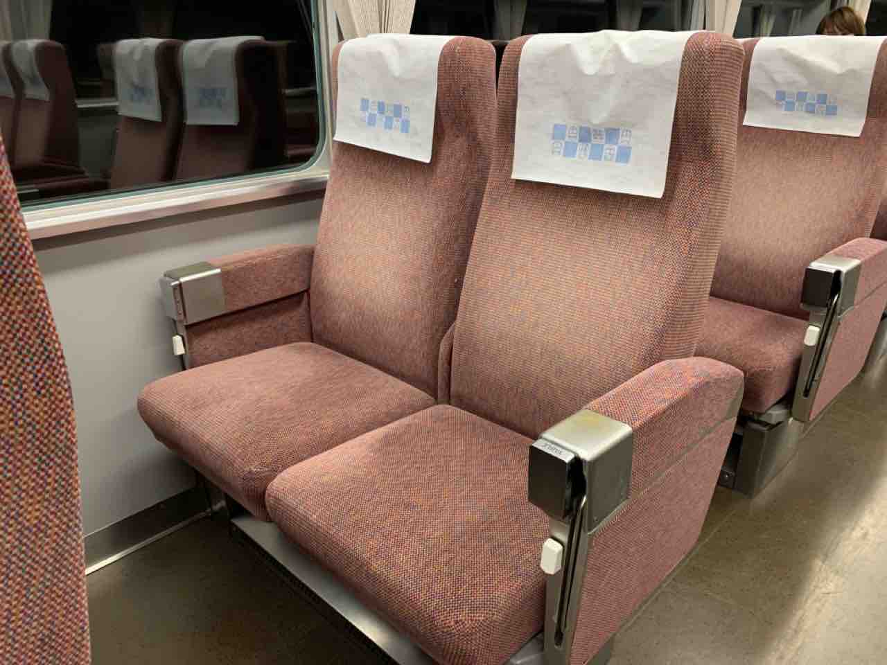 座り心地は、トランポリンのような...笑。バネ強めの座席で、最新の特急の座席とはフィット感やホールド感、快適性は比べものにならないけど、これはこれで好みでした。