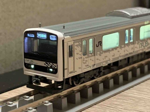 当区が所有しているマイクロエース製209系mue-train。実車では窓の半分以上がカーテンが閉まっていて、その表現をどうしようかと思っていた。