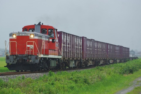千の位が3というなかなか見ない番号のDE10機関車。特殊な番号の理由は、ラッセル用DE15から改造編入していることに由来する。種車は、JR東日本が所有し除雪任務に当たってきたDE15-1001。除雪用ラッセル車の置き換えにより余剰となったDE15がJR貨物に譲渡、2010年にラッセル非対応に改造され、DE10に編入したという経歴を持つ。