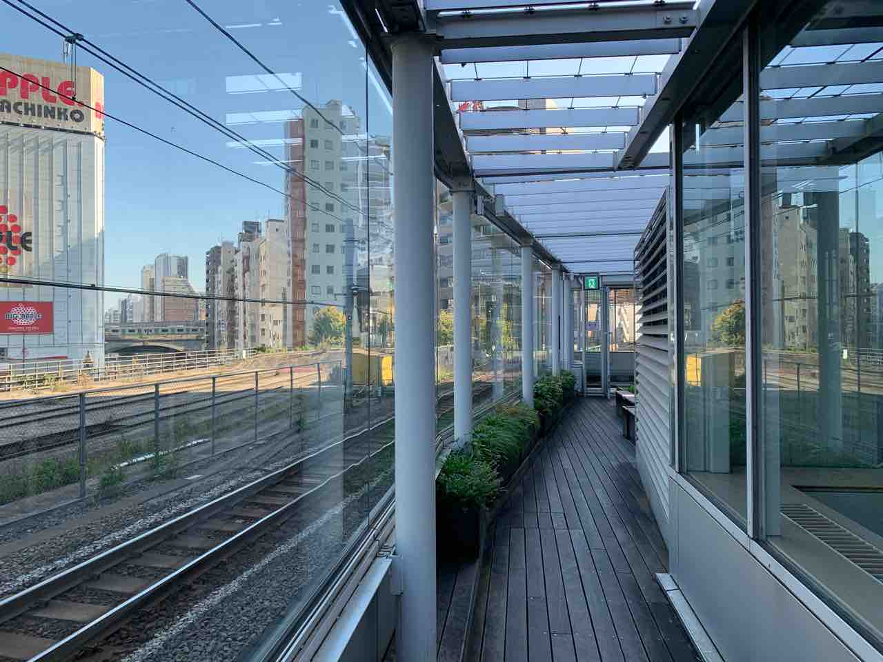 テラスのような造りになっていて、鉄道関連の展示もある。