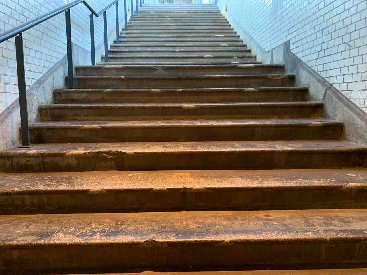 1935階段。1935年に増設された階段だが、駅の現役時代は7年間しか使われなかったらしい。