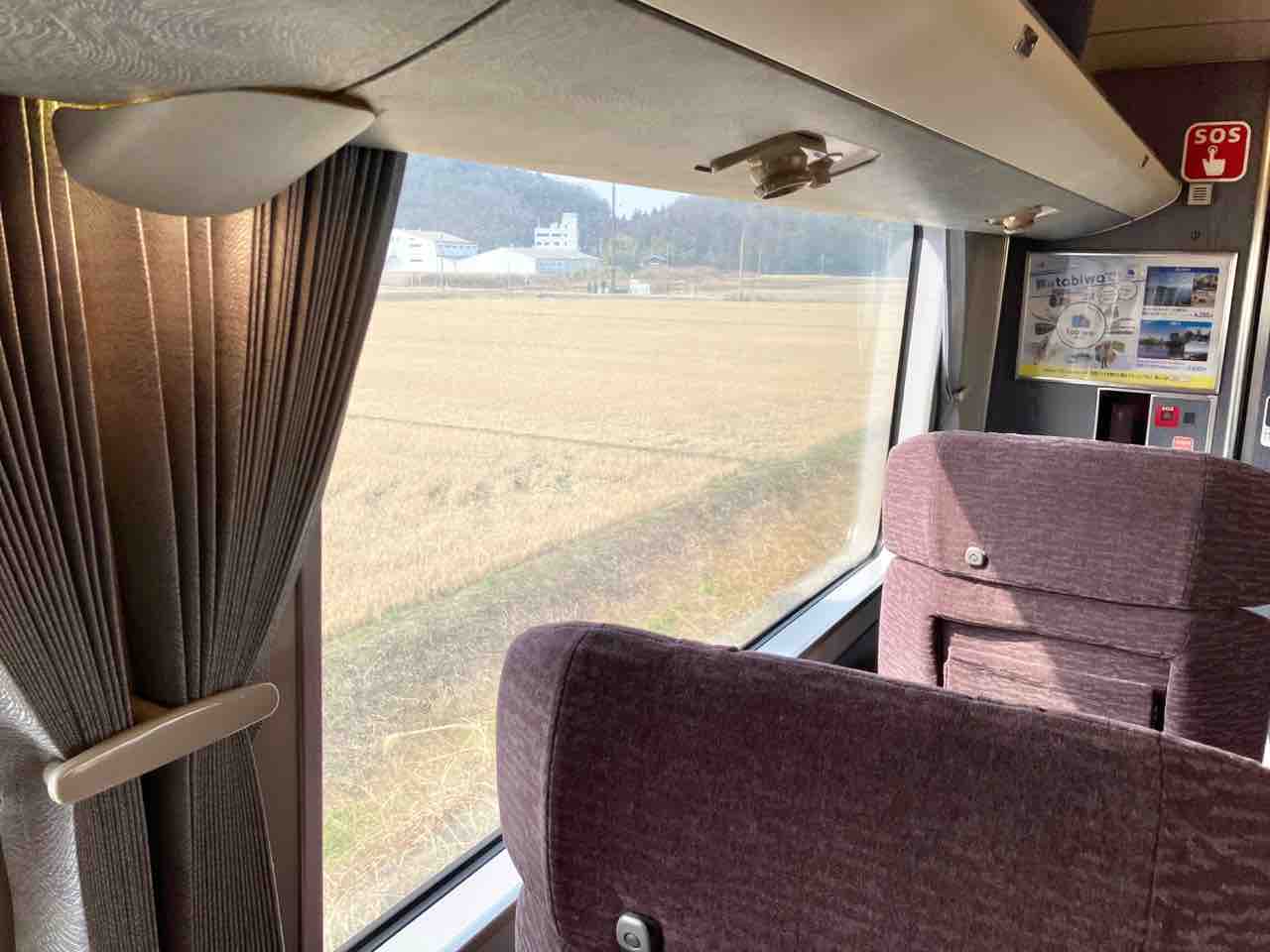 また、ブラインドはなくカーテン式。2000年代以前の特急車両あるあるが満載(笑)。それがまた良いんだよね。