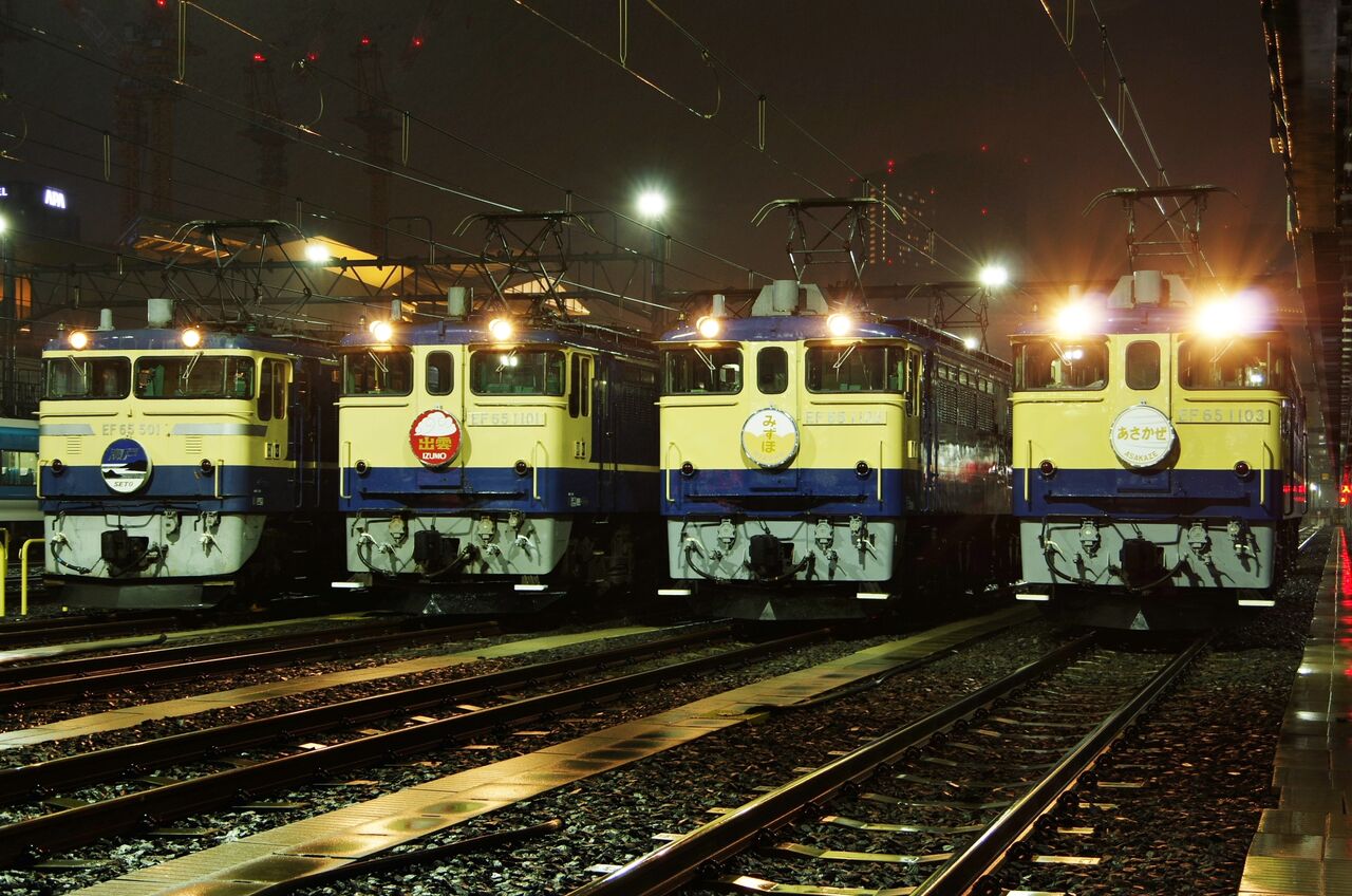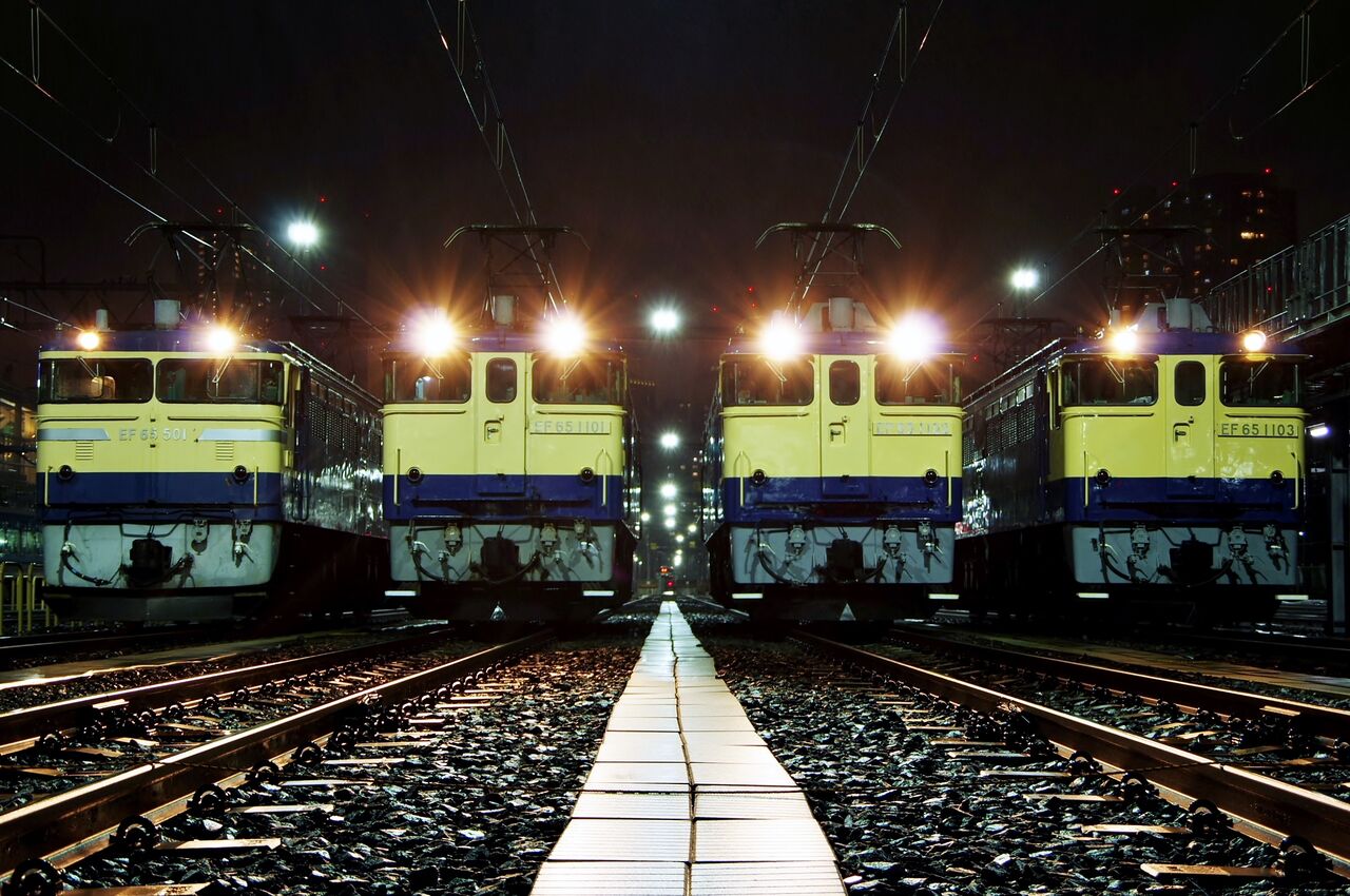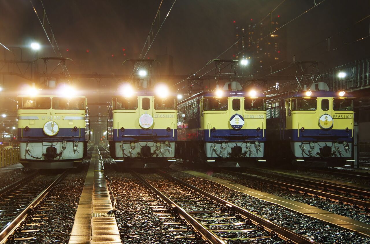 普段は見られない裏動線を見ることができ、また車両基地夜景はとても綺麗。見られて楽しいけど、言わばこれも撮影会の副産物。頭の中はEF65だらけである。