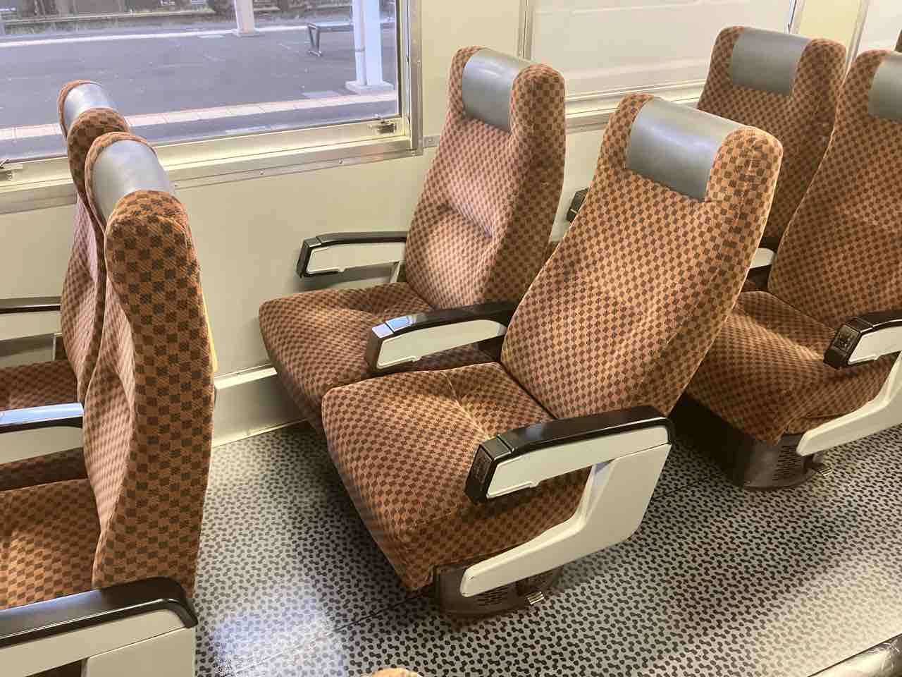 博物館で弄り尽くされたような、そんな椅子。とはいえ485系座席に座って移動できる貴重な車両なのだから文句は言えません(笑)。